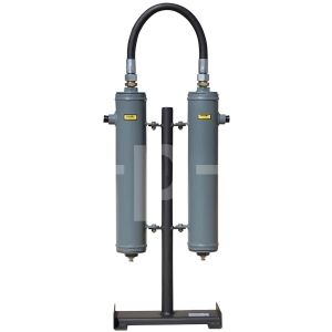 Фильтрационный модуль – двухступенчатый; состоит из двух последовательно объединенных блоков очистки (фильтров). Корпус блока очистки изготовлен из стальной трубы. На корпусе имеется патрубок (с внутренней резьбой см. таблица 2 для конкретной модели) для подвода-отвода магистрали сжатого воздуха. Торцы корпуса закрываются крышками. В нижней крышке для слива конденсата имеется резьбовая пробка (G3/8").